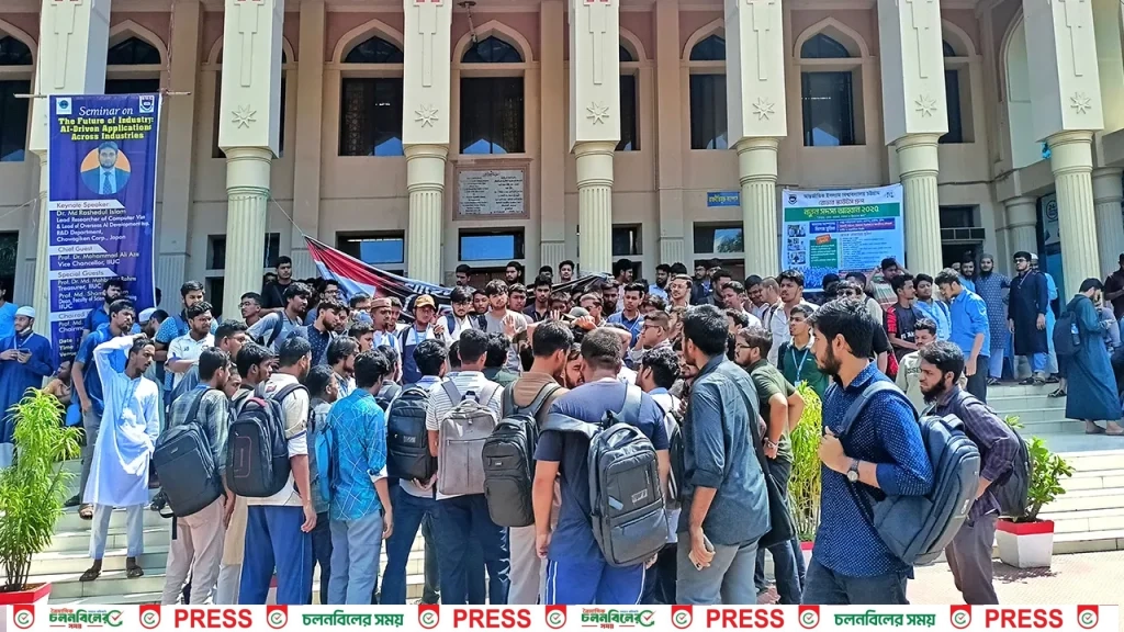 আন্দোলনকারী শিক্ষার্থী সূত্রে জানা গেছে, আন্তর্জাতিক ইসলামী বিশ্ববিদ্যালয়ের শিক্ষার্থীরা গত রোববার থেকে ১৫ দফা দাবি আদায়ে আন্দোলন শুরু করে। দাবি পেশ করার পর তারা মঙ্গলবার রাতের মধ্যে এ বিষয়ে একটি রোডম্যাপ দাবি করে কর্তৃপক্ষের কাছে। উল্লেখযোগ্য দাবিগুলো হলো—লেট ফি বাতিল, প্রয়োজনীয় ল্যাব স্থাপন, হল রুম থেকে ক্লাসরুম সরিয়ে নেওয়া, সব সেমিস্টারে ইমপ্রুভমেন্টের সুযোগ দেওয়া, পরিবহনের আধুনিকায়ন করা ও মেডিকেল সংস্কার করা।