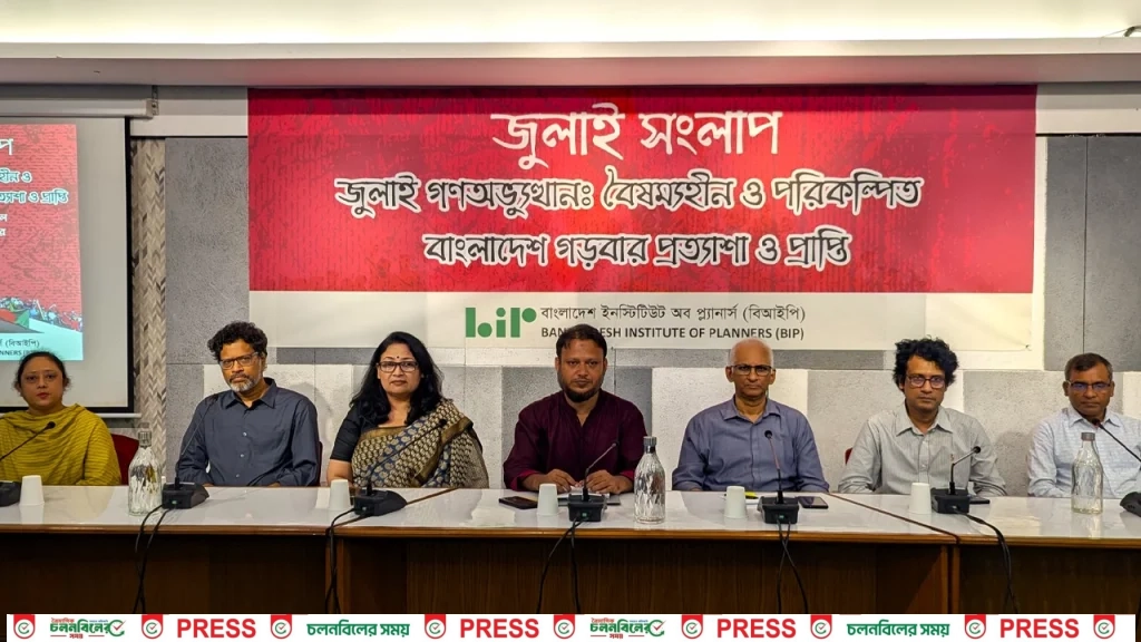 বাংলাদেশ ইনস্টিটিউট অব প্ল্যানার্সের সভাপতি পরিকল্পনাবিদ অধ্যাপক ড. আদিল মুহাম্মদ খানের সভাপতিত্বে সংলাপ শুরু হয়। তিনি বলেন, সামরিক-বেসামরিক আমলাতন্ত্র, সুবিধাবাদী ব্যবসায়ী এবং নিয়ন্ত্রিত গণমাধ্যমের আঁতাতের কারণেই জুলাই গণঅভ্যুত্থানে ছাত্র-জনতার আকাঙ্ক্ষার বাস্তবায়ন করা সম্ভবপর হয়নি। সবার জন্য মানসম্মত আবাসন, নাগরিক সুবিধাদি, দেশের বিভিন্ন এলাকার সুষম উন্নয়ন নিশ্চিত করতে এখন পর্যন্ত উল্লেখযোগ্য অগ্রগতি দেখা যায়নি। বিভিন্ন নীতি পরিকল্পনা প্রণয়নে আগের মতোই ব্যবসায়ী গোষ্ঠীদের স্বার্থ রক্ষায় রাষ্ট্রকে তৎপর দেখা যাচ্ছে। এর বিপরীতে রাষ্ট্র সংস্কারের জন্য সাম্য ও ন্যায্যতাভিত্তিক, দুর্নীতিমুক্ত, শোষণহীন, জবাবদিহিমূলক এবং জ্ঞানভিত্তিক পরিকল্পিত ও টেকসই বাংলাদেশ পুনর্গঠনকে প্রাধিকার দিতে হবে। জুলাই গণঅভ্যুত্থান এ জন আকাঙ্ক্ষা বাস্তবায়নে গোষ্ঠীস্বার্থের বিপরীতে জনস্বার্থ এবং টেকসই উন্নয়ন ও পরিবেশ সুরক্ষাকে গুরুত্ব দিতে হবে।