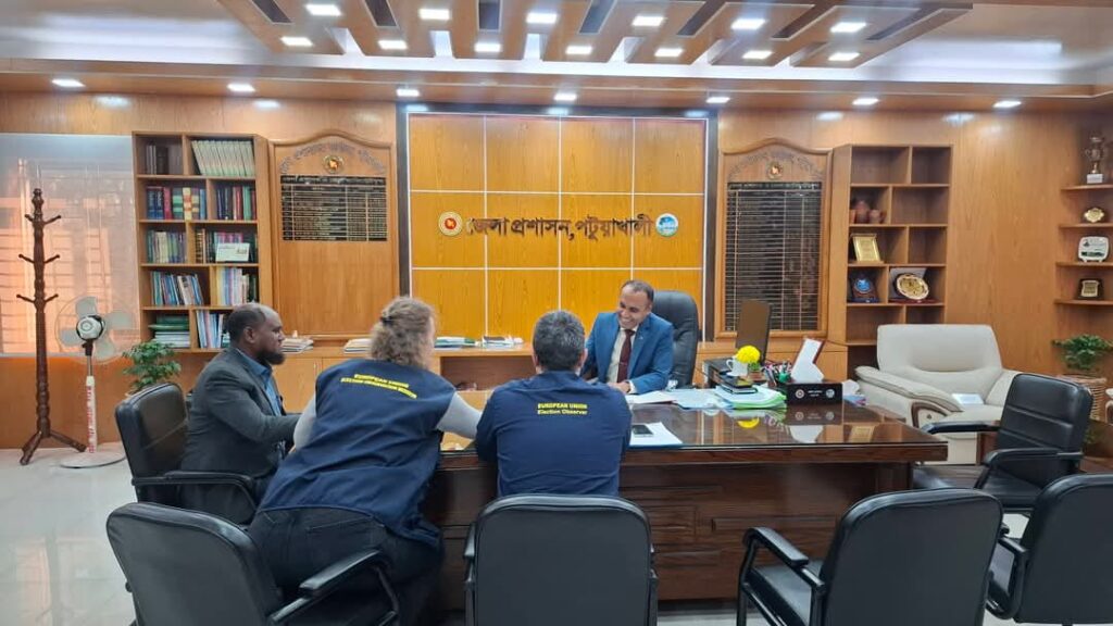 পটুয়াখালী জেলায় আজ সকাল ১০টার দিকে লোকাল নির্বাচন কর্ম সংস্থায় ইউরোপীয় ইউনিয়নের (ইইউ) নির্বাচন পর্যবেক্ষণ মিশনের একটি প্রতিনিধি দলের সঙ্গে গুরুত্বপূর্ণ আলোচনা সভা সফলভাবে অনুষ্ঠিত হয়েছে। এই সভায় জেলার সামগ্রিক নির্বাচনী প্রস্তুতি, ভোটকেন্দ্রভিত্তিক নিরাপত্তা ব্যবস্থা, আইনশৃঙ্খলা পরিস্থিতি, ভোটগ্রহণ কর্মকর্তাদের প্রশিক্ষণ এবং গণভোটের প্রচারণা কার্যক্রমসহ সকল গুরুত্বপূর্ণ বিষয় বিস্তারিতভাবে তুলে ধরা হয়। ইইউ প্রতিনিধিরা এসব তথ্য শুনে সন্তুষ্টি প্রকাশ করেন এবং আসন্ন ত্রয়োদশ জাতীয় সংসদ নির্বাচন ও গণভোট সুষ্ঠু ও স্বচ্ছভাবে সম্পন্ন করার জন্য সহযোগিতার আশ্বাস দেন।সভায় জানা গেছে, পটুয়াখালী জেলায় মোট ১৮৬৭টি ভোটকেন্দ্র স্থাপন করা হয়েছে, যার মধ্যে সংবেদনশীল ও ঝুঁকিপূর্ণ কেন্দ্রগুলোতে বিশেষ নিরাপত্তা ব্যবস্থা গ্রহণ করা হয়েছে। প্রায় ২৫ হাজার ভোটারের তালিকা যাচাই সম্পন্ন হয়েছে এবং হাজার হাজার কর্মকর্তা-কর্মচারীদের প্রশিক্ষণ দেওয়া হয়েছে। গণভোট প্রচারণায় স্থানীয় মিডিয়া, এনজিও এবং সমাজসেবী সংগঠনগুলোর সঙ্গে সমন্বয় করে বিভিন্ন কর্মসূচি চলছে। ইইউ দলের প্রধান পর্যবেক্ষক জানান, তারা ৬৪টি জেলায় লং-টার্ম পর্যবেক্ষক মোতায়েন করেছেন এবং পটুয়াখালীর প্রস্তুতি দেখে খুশি হয়েছেন