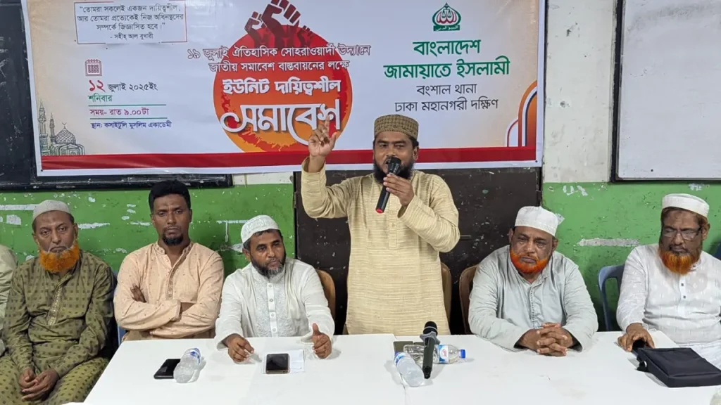 শনিবার (১২ জুলাই) রাতে জামায়াতে ইসলামী বংশাল থানার ইউনিট দায়িত্বশীল সমাবেশে প্রধান অতিথির বক্তব্যে তিনি এসব কথা বলেন।