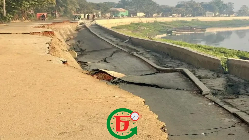 সরেজমিনে দেখা গেছে, কাশিমপুর ৬ নম্বর ওয়ার্ডের ধনঞ্জয়খালী এলাকায় কয়েক কিলোমিটার সড়ক নির্মাণকাজ শেষ পর্যায়ে রয়েছে। কিন্তু একটি অংশে বড় ধরনের ধস নেমে রাস্তার মাঝ বরাবর ভেঙে গেছে এবং আশপাশে ফাটল ছড়িয়ে পড়েছে। এতে স্থানীয়দের মধ্যে আতঙ্ক বিরাজ করছে, বিশেষ করে ভারী যানবাহন চলাচল নিয়ে উদ্বেগ তৈরি হয়েছে।