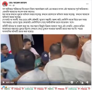 ভিডিওটিতে দেখা যায়, এনসিপি নেতা আতাউল্লাহ পোডিয়ামের দিকে তেড়ে যান। সেখানে অবস্থান করা কয়েকজন তাকে ধরে পেছনে সরিয়ে দেন। এ সময় তিনি ফ্লোরে পড়ে গেলে পুলিশ সদস্যরা তাকে টেনে তোলেন। পরে সংবাদ সম্মেলন করে আতাউল্লাহ দাবি করেন রুমিন ফারহানার লোকজন তার ওপর হামলা চালিয়েছে।