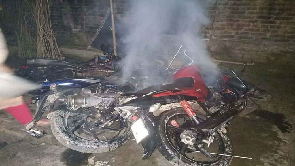 গাইবান্ধায় নির্বাচনী প্রচারনের সময় হামলা মোটরসাইকেল এ অগ্নিসংযোগ