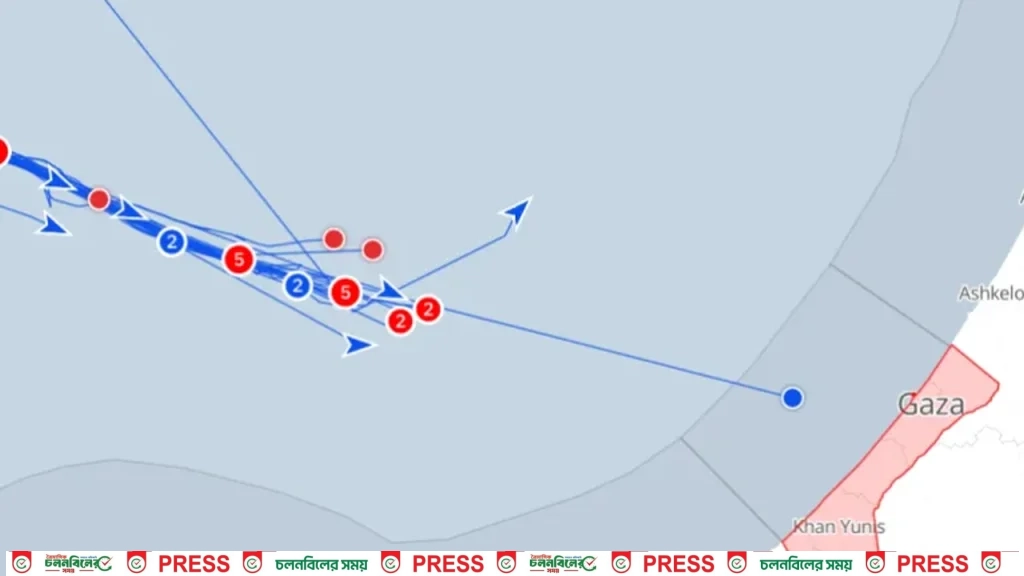 অন্য ২৩টি জাহাজ গাজা উপকূল থেকে প্রায় ৫০ থেকে ৬০ কিলোমিটার দূরে অবস্থান করছে। এর আগে গতকাল বুধবার রাতে ইসরায়েলি নৌবাহিনী ফ্লোটিলার ১৩টি জাহাজ আটকে দেয় এবং সেখানকার ৩৭ দেশের দুই শতাধিক অধিকারকর্মীকে আটক করে। আটক ব্যক্তিদের মধ্যে সুইডিশ জলবায়ু আন্দোলনকারী গ্রেটা থুনবার্গও আছেন।