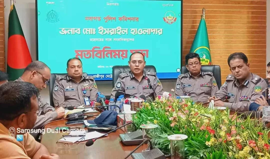 গাজীপুর মেট্রোপলিটন পুলিশের নবনিযুক্ত পুলিশ কমিশনার মো. ইসরাইল বলেছেন,গাজীপুরকে নিরাপদ, আধুনিক ও অপরাধমুক্ত নগরীতে রূপ দিতে চাই মাদক, অপরাধী চক্র, অবৈধ পার্কিং, বস্তিতে মাদকের উৎসস্থল ও মব সৃষ্টিকারীদের বিরুদ্ধে জিরো টলারেন্স নীতি গ্রহণ করা হবে। কেউই আইনের ঊর্ধ্বে নয়। তিনি আরও জানান, গাজীপুরে চলমান যানজট নিরসনে বিশেষ নজর দেয়া হবে ও অবৈধ পার্কিংসহ যান চলাচলে শৃঙ্খলা ফেরাতে নিয়মিত অভিযান পরিচালনা করা হবে।