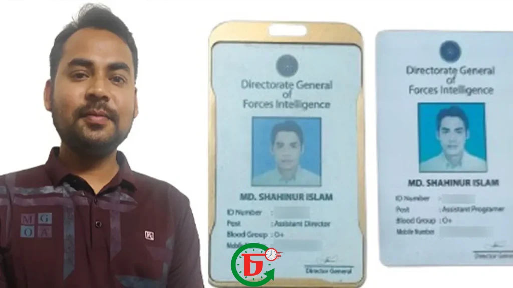 গ্রেপ্তারের সময় তার কাছ থেকে দুটি ভুয়া পরিচয়পত্র উদ্ধার করা হয়। একটিতে ‘অ্যাসিস্ট্যান্ট ডাইরেক্টর, ডিজিএফআই’ এবং অন্যটিতে ‘অ্যাসিস্ট্যান্ট প্রোগ্রামার, ডিজিএফআই’ লেখা ছিল। এছাড়া দুটি মোবাইল ফোনও জব্দ করা হয়েছে।