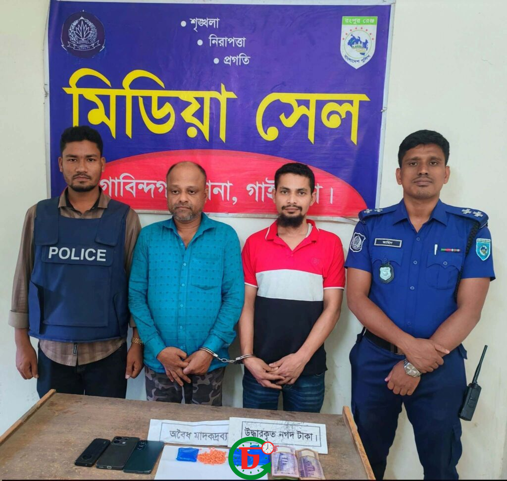 গাইবান্ধার গোবিন্দগঞ্জে গোপন সংবাদের ভিত্তিতে অভিযান চালিয়ে ৫শ ৯৫ পিচ ইয়াবাও নগদ ৭২ হাজার টাকাসহ দুই পেশাদার মাদক ব্যাবসায়ীকে গ্রেফতার করেছে র্যাপিড একশন ব্যাটালিয়ন র্যাব-১৩।