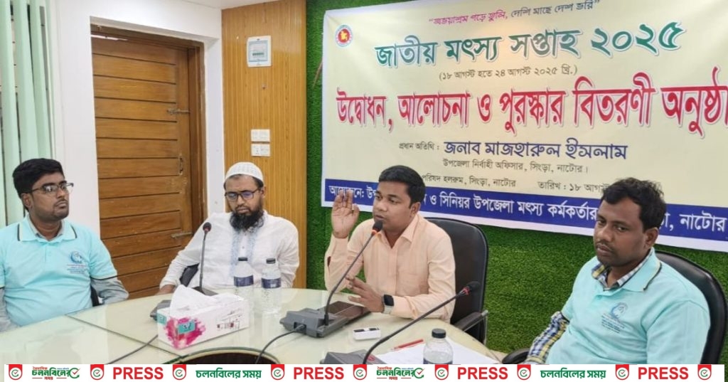সোমবার (১৮ আগস্ট) বেলা ১১টায় সিংড়া উপজেলা হলরুমে জাতীয় মৎস্য সপ্তাহ উপলক্ষে আয়োজিত আলোচনা সভায় প্রধান অতিথির বক্তব্যে তিনি এসব বলেন।