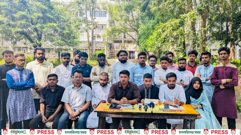 শনিবার (২০ সেপ্টেম্বর) দুপুর ১টায় ক্যাম্পাসের কলার ঝুপড়ির সামনে এ ঘোষণা দেন শাখা ছাত্র অধিকার পরিষদের আহ্বায়ক তামজিদ উদ্দিন।