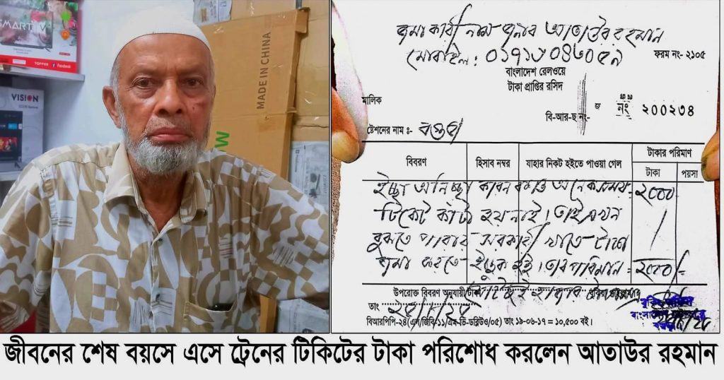 সাবেক কাস্টম ইন্সপেক্টর আতাউর রহমান বলেন, “ছাত্রজীবনে বুঝতাম না, আবার টাকাও ছিল না। ট্রেনে বিনা টিকিটে বগুড়া বা গাইবান্ধায় সিনেমা দেখতে যেতাম। তবে চাকরি পাওয়ার পর থেকেই একটা অপরাধবোধ তৈরি হয়েছিল। ঠিক করেছিলাম, সুযোগ পেলে সেই ভাড়া ফেরত দেবো। আলহামদুলিল্লাহ, আজ সেটা করে ফেলেছি। সত্যি অনেক হালকা লাগছে।”