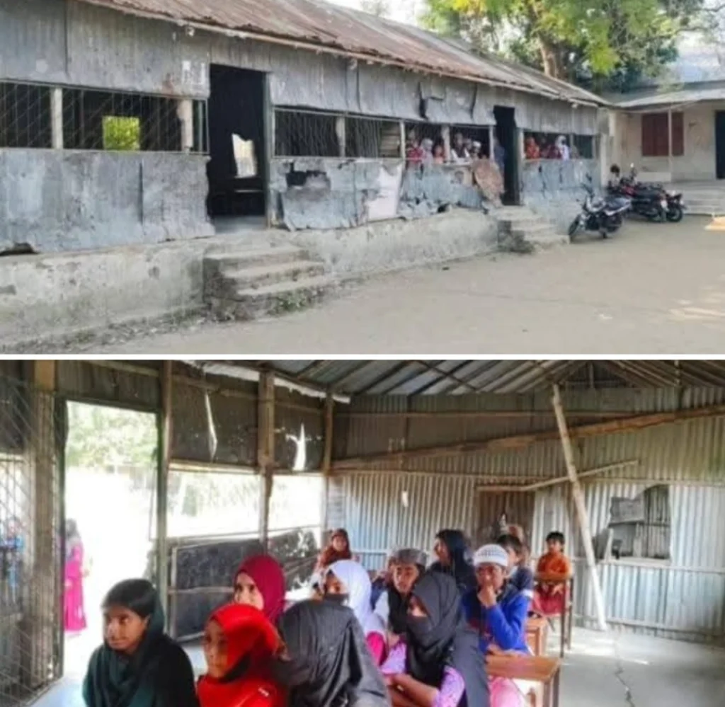 অন্য শিক্ষার্থী জাকিরুল ও মেরাজ জানায়, টিনের ছিদ্র দিয়ে আকাশ দেখা যায়। বৃষ্টি হলে শ্রেণিকক্ষে পানি ঢুকে বই-খাতা ভিজে যায়। তারা দ্রুত একটি নিরাপদ শ্রেণিকক্ষের দাবি জানায়।