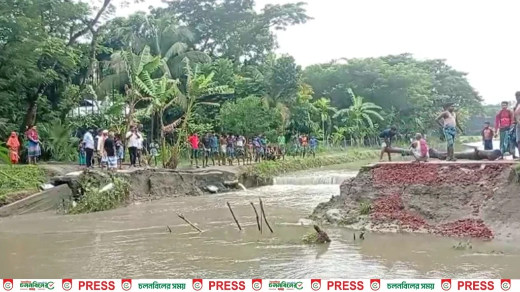 শিক্ষার্থী রায়হান আহমেদ বলেন, বিদ্যালয়ে যাওয়ার সময় ভাঙনটি বড় ছিল না। ছুটি শেষে এসে দেখি ভাঙনটি খালে পরিণত হয়েছে। এখান দিয়ে এখন যাওয়ার সুযোগ নেই। এজন্য সাইকেলটি কষ্ট করে উঠিয়ে সাঁকো পার হয়ে মানুষের বাড়ির ভেতর দিয়ে যেতে হচ্ছে।