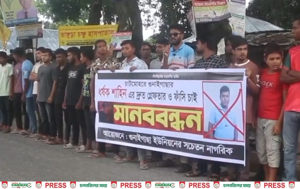 মানববন্ধনে বক্তারা সরকারের প্রতি অনতিবিলম্বে শাহিনকে গ্রেফতার করে দৃষ্টান্তমূলক শাস্তি নিশ্চিত করার দাবি জানান।