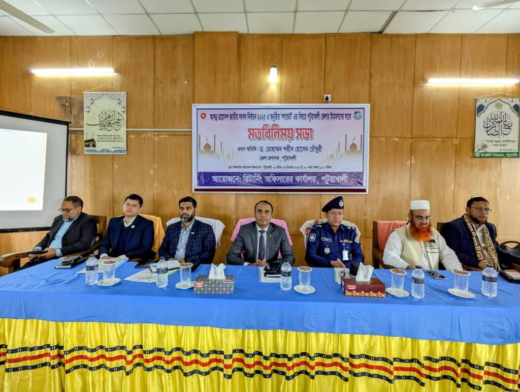 পটুয়াখালী নির্বাচনী সচেতনতায় ধর্মীয় নেতৃত্বের দায়িত্বশীল সমর্থন!পটুয়াখালী: আসন্ন ত্রয়োদশ জাতীয় সংসদ নির্বাচন-২০২৬-এর সঙ্গে অনুষ্ঠিতব্য গণভোট নিয়ে জেলা প্রশাসক কার্যালয়ে পটুয়াখালী জেলার ইমাম ও খতিবদের সঙ্গে একটি গুরুত্বপূর্ণ মতবিনিময় সভা অনুষ্ঠিত হয়েছে। ইসলামী ফাউন্ডেশনের উদ্যোগে আয়োজিত এ সভায় জেলা প্রশাসক সভাপতিত্ব করেন। গণভোটের প্রস্তুতি, ভোটার সচেতনতা বৃদ্ধি এবং ধর্মীয় নেতাদের ভূমিকা নিয়ে ব্যাপক আলোচনা হয়।সভায় জেলার শীর্ষস্থানীয় ইমামরা উপস্থিত হয়ে গণভোটের মাধ্যমে জুলাই চার্টারের ভবিষ্যৎ নির্ধারণের গুরুত্ব তুলে ধরেন। জেলা প্রশাসক সকল ইমামকে মসজিদ-মাদ্রাসা কেন্দ্র করে ভোটার শিক্ষা ক্যাম্পেইন চালানোর আহ্বান জানান। সভায় সিদ্ধান্ত হয়, ইমামগণ জুমার নামাজে গণভোটের প্রচার করবেন এবং ১২ ফেব্রুয়ারি ভোটদানকে রাষ্ট্রীয় কর্তব্য হিসেবে তুলে ধরবেন।২০২৬-এর নির্বাচন ও গণভোট একই দিনে অনুষ্ঠিত হবে, যা অন্তর্বর্তীকালীন সরকারের সংবিধান সংস্কারের কী পদক্ষেপ। পটুয়াখালী-৩ সহ জেলার সকল আসনে প্রস্তুতি জোরকদমে চলছে। ইমামদের এ সমর্থন গণভোটকে সফলতার দিকে নিয়ে যাবে বলে আশা করা হচ্ছে।পটুয়াখালীর এ উদ্যোগ রাষ্ট্রীয় পর্যায়ে অনুকরণীয়। জেলাবাসী গণভোটে অংশগ্রহণ করে গণতান্ত্রিক প্রক্রিয়াকে শক্তিশালী করবে।