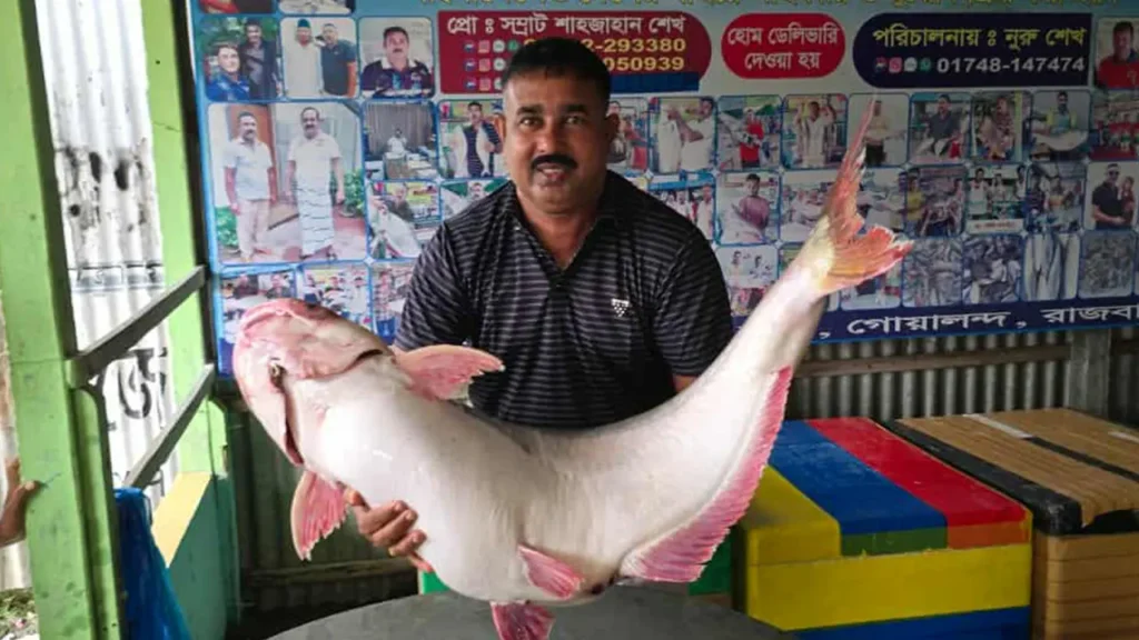 এর আগে রোববার ভোরে দৌলতদিয়া ফেরি ঘাটের অদূরে বাহির চর ছাত্তার মেম্বার পাড়ার কলাবাগান এলাকায় পদ্মা নদীতে স্থানীয় জেলে সোনাই হালদারের জালে মাছটি ধরা পড়ে। পরে দৌলতদিয়া ঘাট মাছ বাজারের আড়ৎদার হালিম সরদারের আড়ৎ ঘর থেকে নিলামে মাছ ব্যবসায়ী শাহজাহান শেখ ২ হাজার ৬০০ টাকা কেজি দরে ৬৭ হাজার ৬০০ টাকা দিয়ে মাছটি কিনে নেন।