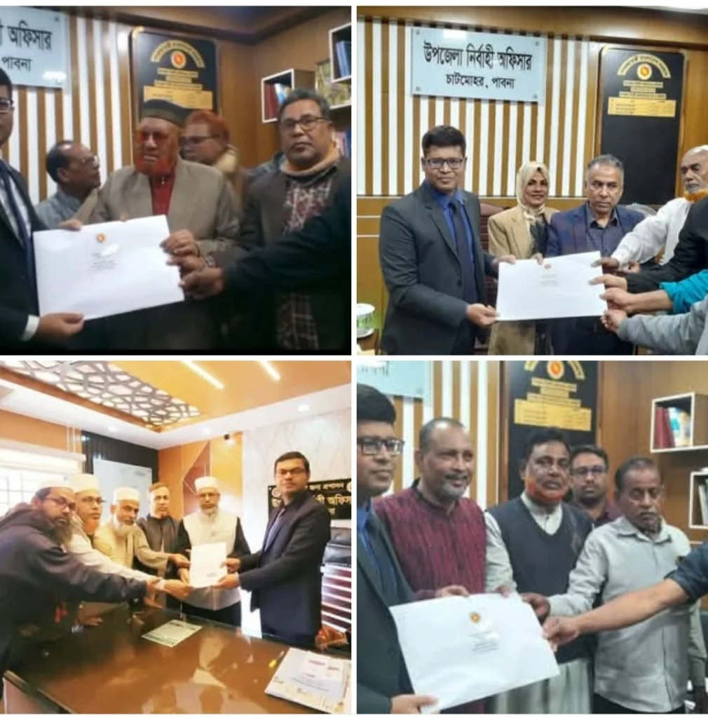 গত ১৭ ডিসেম্বর বুধবার ভাঙ্গুড়া উপজেলা নির্বাহী কর্মকর্তা ও সহকারী রিটার্নিং কর্মকর্তা তাপস পালের কাছ থেকে মনোনয়নপত্র সংগ্রহ করেন জামায়াতে ইসলামী মনোনীত প্রার্থী অধ্যাপক মাওলানা মো. আলী আছগার। একই দিনে চাটমোহর উপজেলা নির্বাহী কর্মকর্তা ও সহকারী রিটার্নিং কর্মকর্তা মুসা নাসির চৌধুরীর কাছ থেকে মনোনয়নপত্র সংগ্রহ করেন জাতীয়তাবাদী সাংস্কৃতিক দলের কেন্দ্রীয় নির্বাহী কমিটির উপদেষ্টা হাসানুল ইসলাম রাজা।