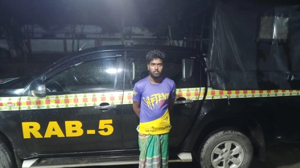 এর আগে রোববার (১ জুন) দিবাগত রাতে নওগাঁর আত্রাই উপজেলার শাহাগোলা রেলগেট এলাকায় অভিযান চালিয়ে তাকে গ্রেপ্তার করা হয়। র্যাব-৫ এর উপঅধিনায়ক মেজর আসিফ আল রাজেক এক বিজ্ঞপ্তিতে বিষয়টি নিশ্চিত করেছেন।