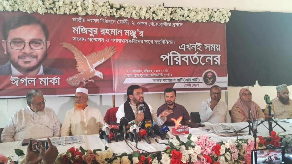 আসন্ন ত্রয়োদশ সংসদ নির্বাচনে ফেনী-২ (সদর) আসনের এমপি প্রার্থী হিসেবে আনুষ্ঠানিকভাবে প্রচারণা শুরু করেছেন এবি পার্টির চেয়ারম্যান ও ফেনী সদর উপজেলার কৃতি সন্তান মজিবুর রহমান মঞ্জু। সকালে ফেনী শহরের গ্র্যান্ড সুলতান কনভেনশন হলে সংবাদ সম্মেলন ও মতবিনিময় সভার মাধ্যমে নির্বাচনী প্রচার কার্যক্রম শুরু হয়। এরমধ্যে ফেনী সদর উপজেলা জুড়ে মঞ্জুর ব্যানার-পোস্টার লাগানো শুরু হয়েছে।