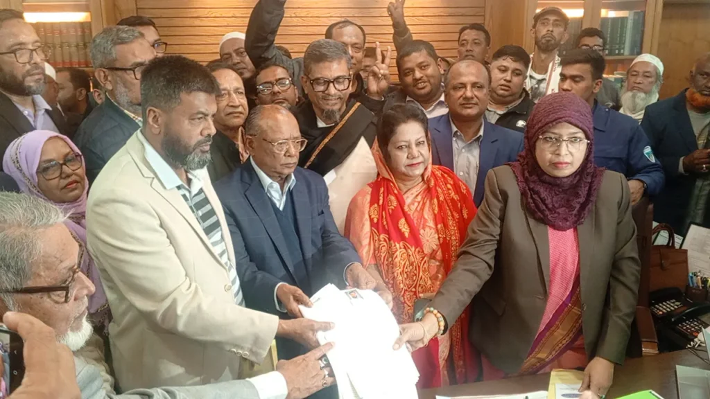 সোমবার (২৯ ডিসেম্বর) দুপুরে ফেনী জেলা প্রশাসক ও জেলা রিটার্নিং কর্মকর্তার মনিরা হকের কাছে মনোনয়ন জমা দেন বিএনপির জাতীয় ও স্থানীয় নেতারা।