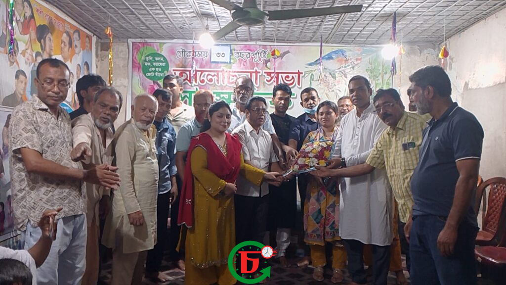 ক্যাপশন: “সাফল্যের আনন্দ ভাগাভাগি: নন্দন শিল্পীগোষ্ঠীর আয়োজনে নবনির্বাচিত কোষাধ্যক্ষ ও অ্যাডভোকেট ফিরোজকে ফুলেল শুভেচ্ছা জানানোর এক স্মরণীয় মুহূর্ত।”