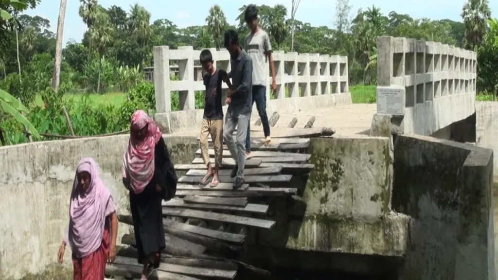 বরিশালের বাকেরগঞ্জে কবাই ইউনিয়নে কোটি টাকা ব্যয়ে নির্মিত সেতুতে উঠতে হয় মই দিয়ে।