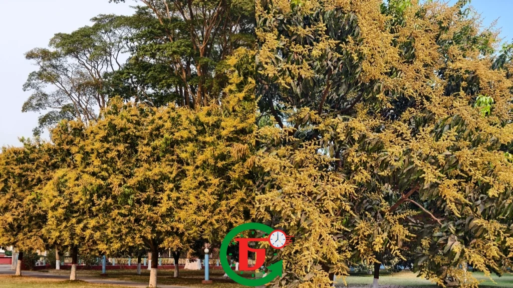 সরেজমিনে ক্যাম্পাস ঘুরে দেখা যায়, বিশ্ববিদ্যালয়ের আমবাগান, পরিবহন চত্বর, বুদ্ধিজীবী চত্বর, কেন্দ্রীয় জামে মসজিদ, শহিদ মিনার, চারুকলা ও কৃষি অনুষদ, বধ্যভূমি, বিভিন্ন অ্যাকাডেমিক ভবনের সামনের প্রাঙ্গণ এবং আবাসিক হলসমূহের আঙিনায় থাকা আম গাছগুলোতে এখন মুকুলের বাহার। সবুজ পাতার ফাঁকে হলুদ মুকুলের সমারোহ যেন প্রকৃতির নিজস্ব রঙের উৎসব হয়ে ধরা দিয়েছে।