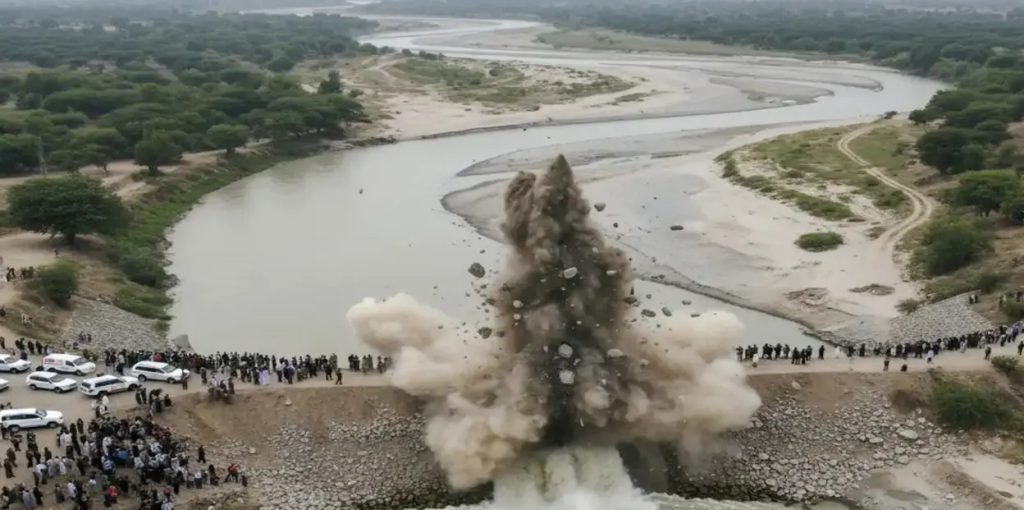 বিস্ফোরণ ঘটিয়ে বাঁধ উড়িয়ে দিল পাকিস্তান