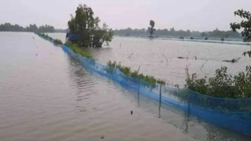 বৃষ্টিতে তলিয়ে গেছে সাড়ে ৬০০ চিংড়ি ঘের