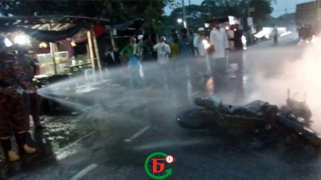 গৌরনদী ফায়ার সার্ভিসের স্টেশন অফিসার মো. মিজানুর রহমান গণমাধ্যমকে জানিয়েছেন, খবর পেয়ে ঘটনাস্থলে পৌঁছে মোটরসাইকেলের আগুন নিয়ন্ত্রণ করা হয়। তবে আগুন নিয়ন্ত্রণ করার আগেই মোটরসাইকেলটির অর্ধেক ক্ষতিগ্রস্ত হয়।