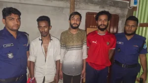 আটকরা হলো— টাঙ্গাইলের নাগরপুর উপজেলার সলিমাবাদ গ্রামের মৃত্যু আলতাফ মিয়ার ছেলে রাজ ইসলাম (২২), চাঁদপুরের মতলব উপজেলার পাঠান বাজার গ্রামের নুর মোহাম্মদ স্বপনের ছেলে রাকিব হোসেন (২৫) ও সুনামগঞ্জের ধর্মপাশা উপজেলার ধর্মপাশা গ্রামের জালাল মিয়ার ছেলে জুয়েল রানা (২২)।