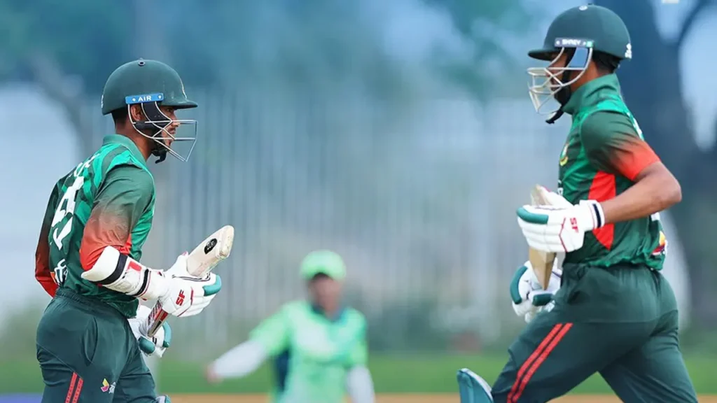 বাংলাদেশের ব্যাটিংয়ের ছন্দপতন শুরু হয় পঞ্চম ওভারে। ২৪ রান তুলতেই ফেরেন দুই ওপেনার রিফাত বেগ ও জাওয়াদ আবরার। দলীয় ৫৫ রানে অধিনায়ক তামিমও ব্যর্থ হয়ে ফিরে যান। এরপর মিডল অর্ডারে ভেঙে পড়ে ব্যাটিং স্তম্ভ্। একের পর এক ব্যাটার আসা-যাওয়ার মধ্যেই ছিলেন।