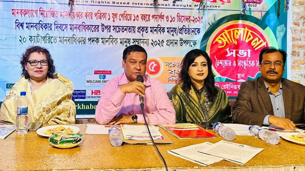 বুধবার (৬ অক্টোবর) বিকালে ঢাকার একটি কনভেনশন হলে মানবাধিকার খবর আয়োজিত ‘মানবিক মানুষ সম্মাননা-২০২৫’ অনুষ্ঠানে প্রধান অতিথির বক্তব্যে তিনি এসব বলেন। মানবাধিকার খবর সম্পাদক রিয়াজ উদ্দিনের সভাপতিত্বে অনুষ্ঠানে অন্যদের মধ্যে সাবেক সচিব মার্গুব মোর্শেদ, মানবাধিকার সংগঠক রেজোয়ানা বাশার, নাসরিন হেলালী বক্তব্য রাখেন।