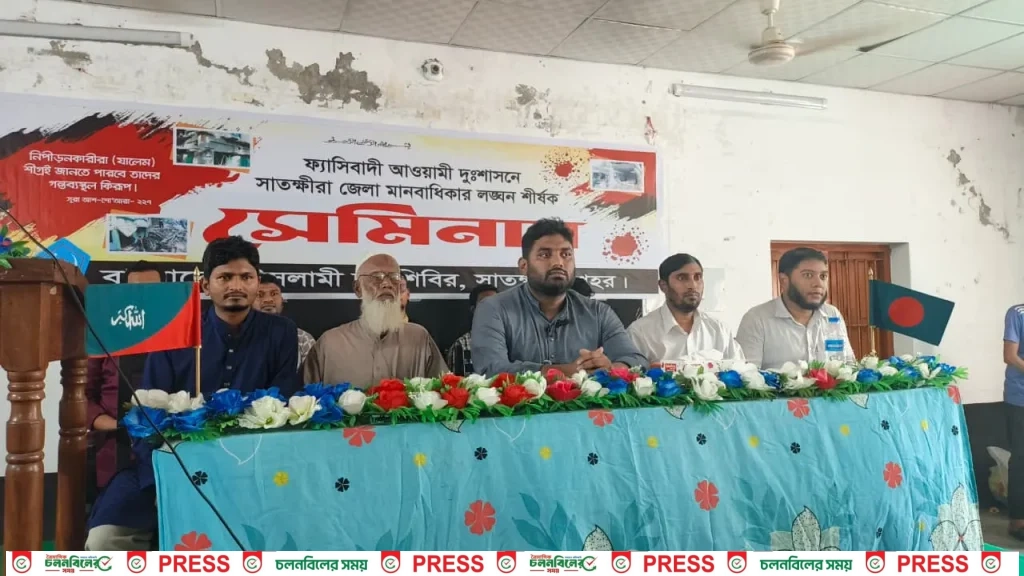 সোমবার (৮ সেপ্টেম্বর) দুপুরে সাতক্ষীরা শহরের মুন্সিপাড়ার আল-আমিন ট্রাস্টের কাজী শামসুর রহমান মিলনায়তনে ‘ফ্যাসিবাদী আওয়ামী দুঃশাসনে সাতক্ষীরা জেলা মানবাধিকার লঙ্ঘন’ শীর্ষক সেমিনারে এসব কথা বলেন তিনি।