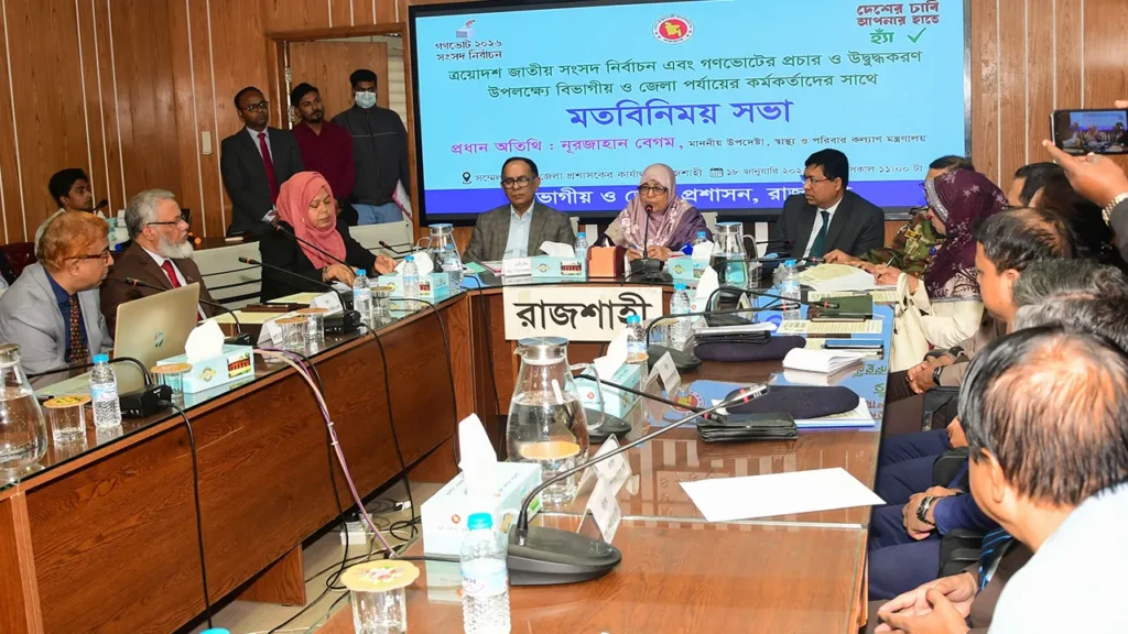 রোববার (১৮ জানুয়ারি) দুপুরে রাজশাহী জেলা প্রশাসকের সম্মেলন কক্ষে গণভোট-২০২৬ বিষয়ক বিভাগীয় ও জেলা পর্যায়ের কর্মকর্তাদের সঙ্গে মতবিনিময় সভায় প্রধান অতিথির বক্তব্যে এসব কথা বলেন তিনি।