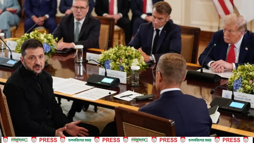 রাশিয়া-ইউক্রেন যুদ্ধ থামাতে মরিয়া যুক্তরাষ্ট্র। এ প্রচেষ্টায় সরাসরি যুক্ত করা হয়েছে ইউরোপীয় নেতাদের। সোমবার (১৮ আগস্ট) তাদের সঙ্গে দিনভর বৈঠক করেছেন মার্কিন প্রেসিডেন্ট ডোনাল্ড ট্রাম্প ও ইউক্রেনের প্রেসিডেন্ট ভলোদিমির জেলেনস্কি। বৈঠকে পশ্চিমা স্বার্থ রক্ষা করে কীভাবে যুদ্ধ থামানো যায় তা নিয়ে বিস্তর আলোচনা করেন নেতারা।