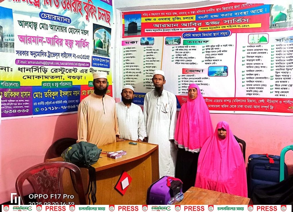 বগুড়ার শিবগঞ্জ উপজেলার মোকামতলায় আরমান আবির হজ্ব সার্ভিসের উদ্যোগে হজ্ব প্রি-রেজিস্ট্রেশন ও ওমরাহ বুকিং কার্যক্রম অব্যাহত রয়েছে। এ কার্যক্রমের মাধ্যমে হজ্ব যাত্রীরা সম্মান, মর্যাদা ও সেবার সহিত পবিত্র মক্কা-মদিনার সফরের প্রস্তুতি নিচ্ছেন। এ বছর প্রথম যাত্রা শুরু করছেন আল্লাহ তাআলার সম্মানিত মেহমান মোঃ শাহিনুর রহমান পরিবারের তিন সদস্য। তাঁদের মধ্যে রয়েছেন—মাতা মোছাঃ রমিছা বেগম, স্ত্রী মোছাঃ মোর্শেদা বেগম গ্রামের ঠিকানা বেলাই, কিচক, শিবগঞ্জ। হজযাত্রীদের জন্য (মক্কা) পরিবহন দায়িত্ব ও সম্মানে হস্তান্তর করা হয়েছে।