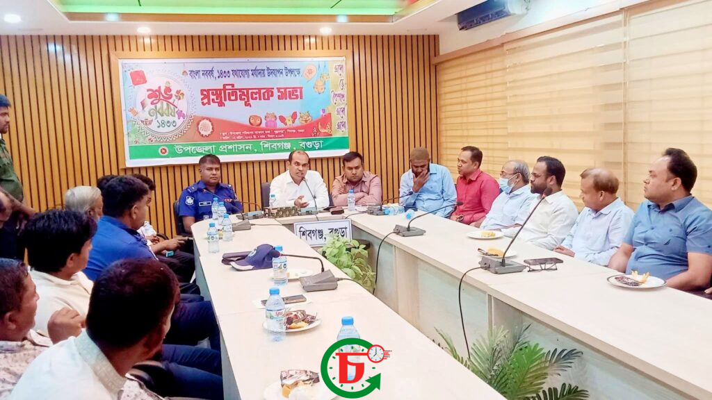 বগুড়ার শিবগঞ্জে উপজেলা প্রশাসনের আয়োজনে বাংলা নববর্ষ ১৪৩৩ উদযাপন উপলক্ষে এক প্রস্তুতিমূলক সভা অনুষ্ঠিত হয়েছে।
