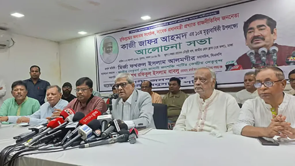 মির্জা ফখরুল অভিযোগ করে বলেন, আজকে কিছুসংখ্যক রাজনৈতিক মহল অত্যন্ত পরিকল্পিতভাবে নির্বাচনকে বানচাল করার জন্য, নির্বাচনকে ব্যাহত করার জন্য নিত্যনতুন দাবি তুলে চলেছে। এমন এমন দাবি তুলছেন, যার সঙ্গে বাংলাদেশের লোকরা পরিচিতই না। সংখ্যানুপাতিক পিআর, সংখ্যানুপাতিক ভোট এটা বুঝতে সময় লাগে, এটা বুঝানো খুবই কঠিন…। এগুলো নিয়ে তারা হুমকি দিচ্ছে, কথা বলছেন, অত্যন্ত জোরেশোরে হুমকি দিচ্ছেন। আমার প্রশ্নটা হচ্ছে যে, কেন করছেন এটা?