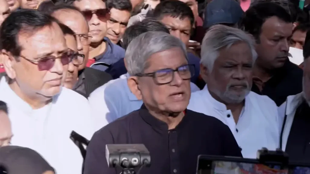 রোববার (১৪ ডিসেম্বর) মিরপুর বধ্যভূমি স্মৃতিসৌধে শ্রদ্ধা জানানো শেষে সাংবাদিকদের সঙ্গে আলাপকালে এ শঙ্কা প্রকাশ করেন তিনি। মির্জা ফখরুল বলেন, ‘নির্বাচনের মাধ্যমে বাংলাদেশের মানুষ আবারও স্বপ্ন দেখছে একটি গণতান্ত্রিক বাংলাদেশের। আমরা যে কোনো মূল্যে দেশের স্বাধীনতা ও সার্বভৌমত্বকে অক্ষুণ্ন রাখব, গণতান্ত্রিক অগ্রযাত্রাকে রক্ষা করব।