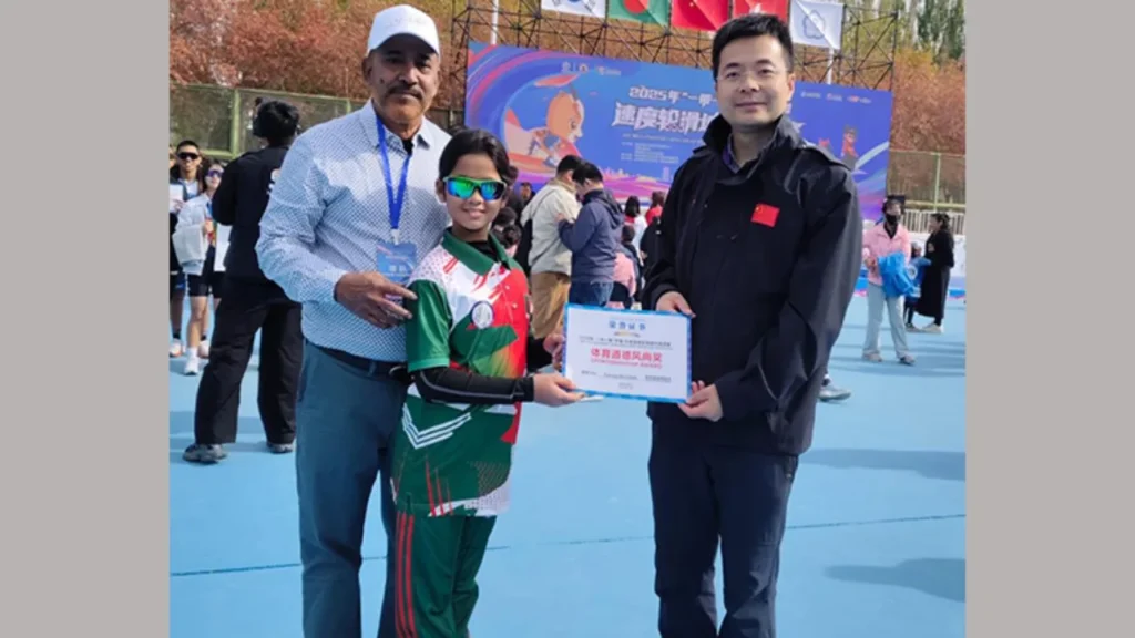 চীনের জিনজিয়াং রাজ্যের কারামাই শহরে অনুষ্ঠিত ‘বেল্ট অ্যান্ড রোড চায়না-আসিয়ান স্পিড রোলার স্কেটিং সিটি ইনভাইটেশনাল টুর্নামেন্ট’-এ বাংলাদেশের স্কেটাররা দুটি স্বর্ণপদকসহ মোট ৪টি পদক জয় করে ৩০ বছরের পুরোনো রেকর্ড ভেঙে দিয়েছে।