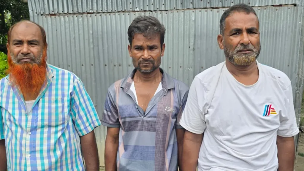 গ্রেপ্তাররা হলেন— জিয়াউর রহমান (৪৬), জয়নাল হক (৫৩) ও নজরুল ইসলাম (৬০)। রাজশাহীর দুর্গাপুর উপজেলার হোজা অনন্তকান্দী গ্রামে তাদের বাড়ি।