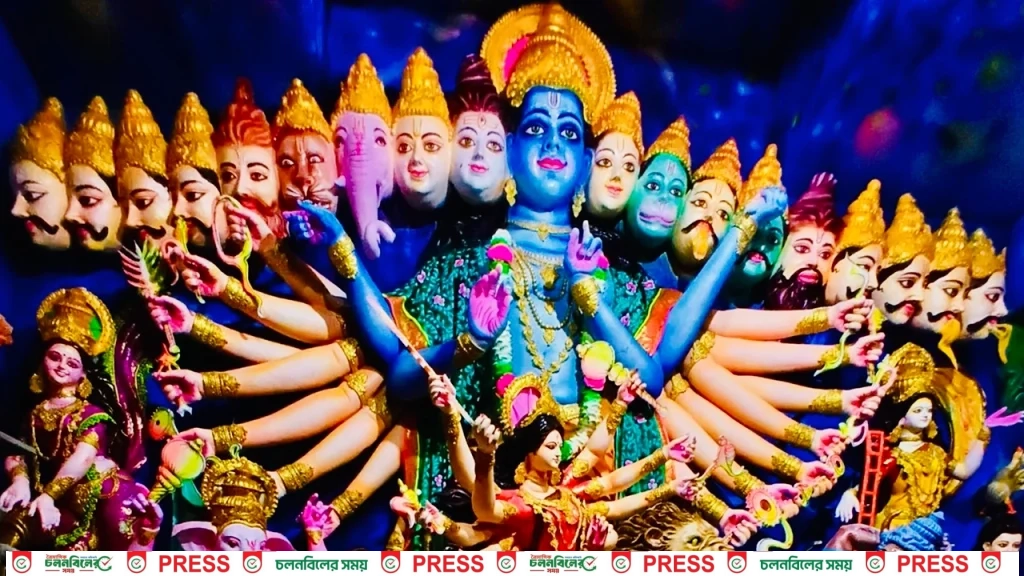 স্থানীয় শিল্পীদের হাতে গড়া এ প্রতিমায় ভগবান বিষ্ণুর বিশ্বরূপে মাঝমধ্যে দুর্গার আবির্ভাব ফুটিয়ে তোলা হয়েছে। দূর থেকে প্রতিমার রূপ এক নজরে চোখে পড়লেই মনে হয়, এটি কেবল ধর্মীয় অনুষঙ্গ নয় বরং এক অসাধারণ শিল্পকর্ম।