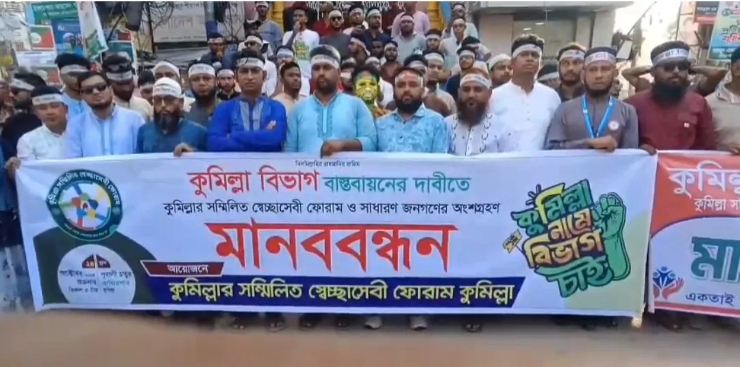 কুমিল্লা বিভাগ বাস্তবায়নের দাবিতে স্বেচ্ছাসেবীদের মানববন্ধন ও সমাবেশ